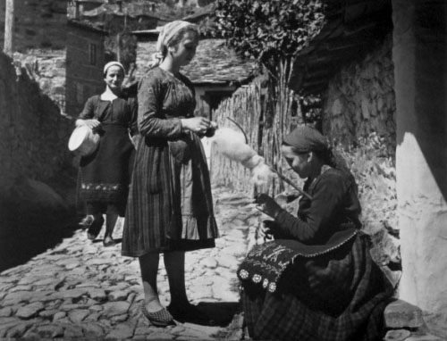 Το παραδοσιακό πλέξιμο ήταν συνήθως δουλειά για δύο. Ο ένας κράταγε το αδράχτι και ο άλλος έπλεκε