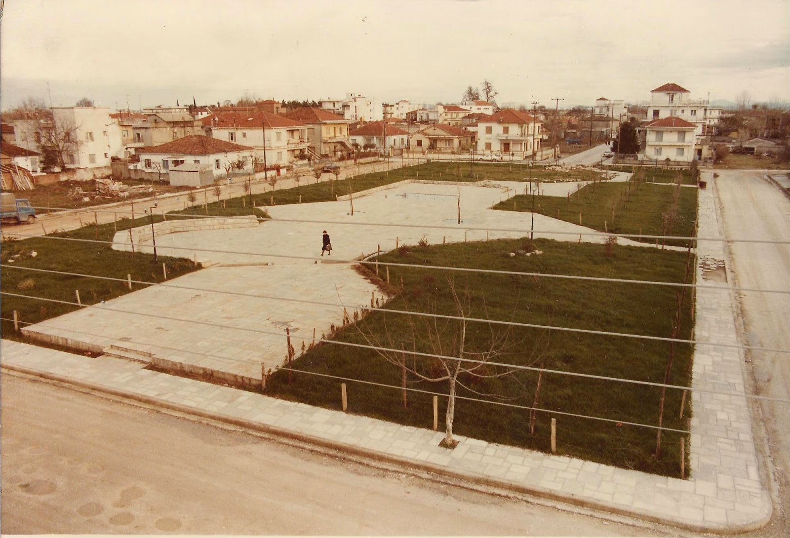 Η πλατεία της Αγρότισσας όταν κατασκευαζόταν το 1986 στο αρχικό της σχέδιο