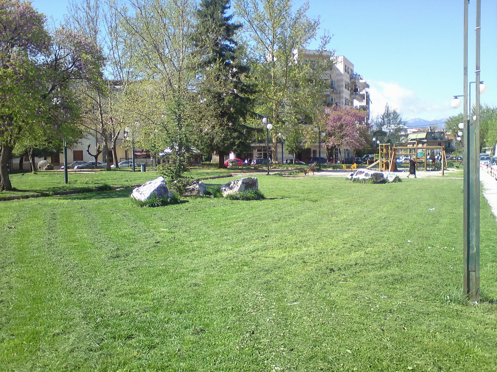 Η ανακαινισμένη κεντρική πλατεία των Τρικάλων το 2005 πρασινισμένη και πεζοδρομημένη